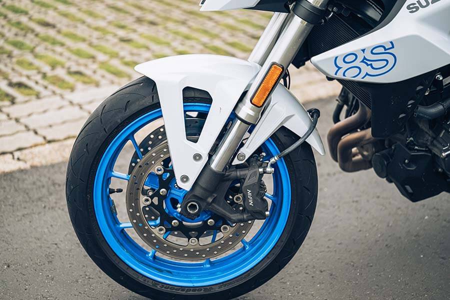 這套全新開發的鋼管車架特別強調在追求直線穩定性、高速安定與操控敏捷度之間追求平衡。在山路上嘗試帶點速度進入彎道,減速過後輕扣前煞入彎,GSX-8S的傾倒其實相當平穩、期間沒有突如其來的下墜感,且明顯能感受出前軟、後硬的懸吊特性以柔順的方式將車頭吸入彎中。這組懸吊在預載方面設定其實偏硬朗,在低速或是突來的坑洞落差會帶來較明顯的衝擊;不過同時它也帶來相當不錯的支撐性,過彎絕不會於在車上搖啊搖啊搖,綜合調配出寬廣甜蜜帶的過彎路線自由度真的讓人與過去鈴木GSX-RR賽車在motoGP賽場上那種為所欲為的過彎性能產生一點情感上的連結吶。在面臨連續彎道環伺的山路當中,GSX-8S其實同時體現出攻略彎道時的從容淡定。1465mm的軸距配上25°前傾角、104mm略大的拖曳距的確在這部車上發揮出存在感,每當入彎前推動龍頭入彎之際,總感覺車輛的轉向與傾倒反應相當漸進可預測。一組在過彎時韌性恰到好處的車架、配上註定帶來穩定騎乘特性的幾何設定,你可以輕易地在直線巡航、在劃過彎道時都能感受到它的直進性與安定感。
