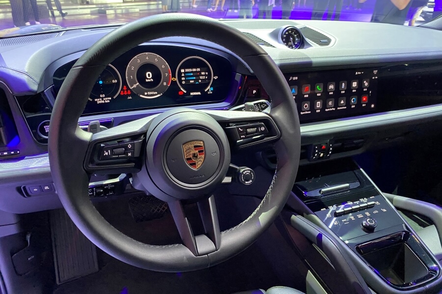 說到影音,新Cayenne首度搭載12.6吋的全數位儀錶,具有單獨豎立在儀錶台上的曲面螢幕,還可額外選配全面優化的抬頭顯示器。標配的12.3吋通訊管理系統(PCM)中央螢幕,內建Spotify及Apple Music等應用程式,剛剛提到的乘客座螢幕為10.9吋,此顯示幕並採用特殊鍍膜,確保駕駛者不會因乘客螢幕內容而分心。