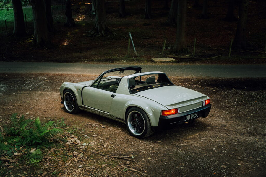 這當然不僅止於你能看到重新設計、並以碳纖維材質塑成的車身外型、加寬的葉子板、前蓋上的進氣孔以及取代上掀頭燈的LED照明裝置等。事實上它在表皮之下接受了以鋼管結構加強原有914底盤、並加諸來自Cayman的懸吊幾何結構,再裝上源自WRC的三向可調避震器;煞車系統則換上通風打孔碟、保時捷Brembo四活塞卡鉗與AP Racing踏板等。同時還換上線傳油門、符合FIA標準的油箱及量身打造的不銹鋼排氣系統。最後,最重要的變化在於兩張座椅後方已經換上源自987 Cayman S的3.8升水平對臥六缸引擎,內部換上鋼製內構部件、鍛造活塞、新的ECU及電源管理系統等。翻新改造後的輸出預在380-400hp之間,是Porsche/VW 914的三倍有餘(是的,當時這兩家合資公司都想要一款入門小跑車,因此諸位可以看到當年車型車尾銘牌有著VW的標誌)。