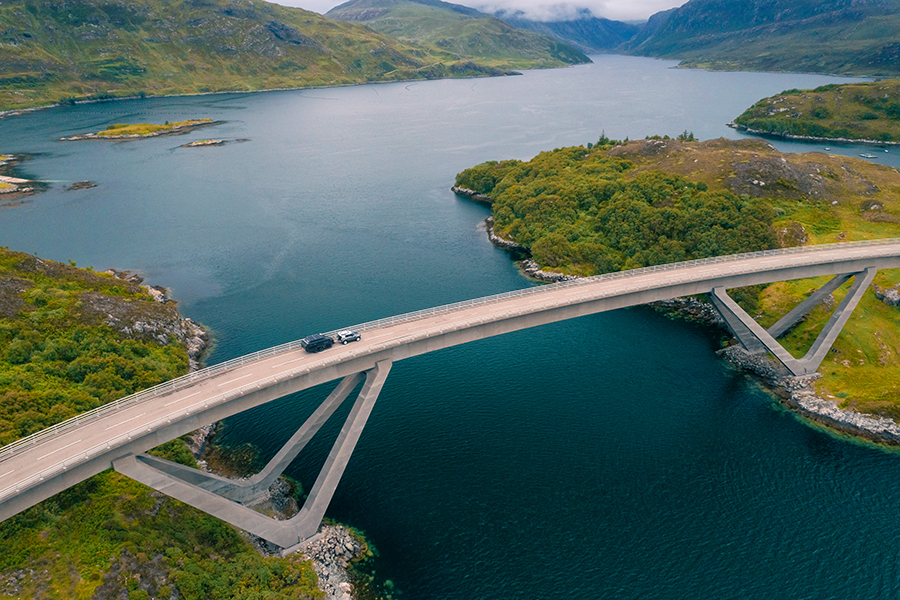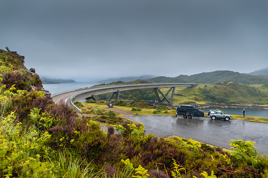 由於有時間可以打發,我們決定折返南邊拍一些Bruder走在路上的照片。我不會用露營拖車稱呼它。技術性拖車也好,求生車或內陸機具也好,這些稱呼我都可以接受,唯獨接受不了露營拖車。不過這一帶倒是有人使用露營拖車,還有露營車。這裏是簡稱NC500的北海岸500號公路(North Coast 500),我原本以為會見到許多跑車在高地風馳電掣,事實上卻有不少人拖著他們的家蟻躝一樣霸佔道路,除此之外還有單車合一些私家車。