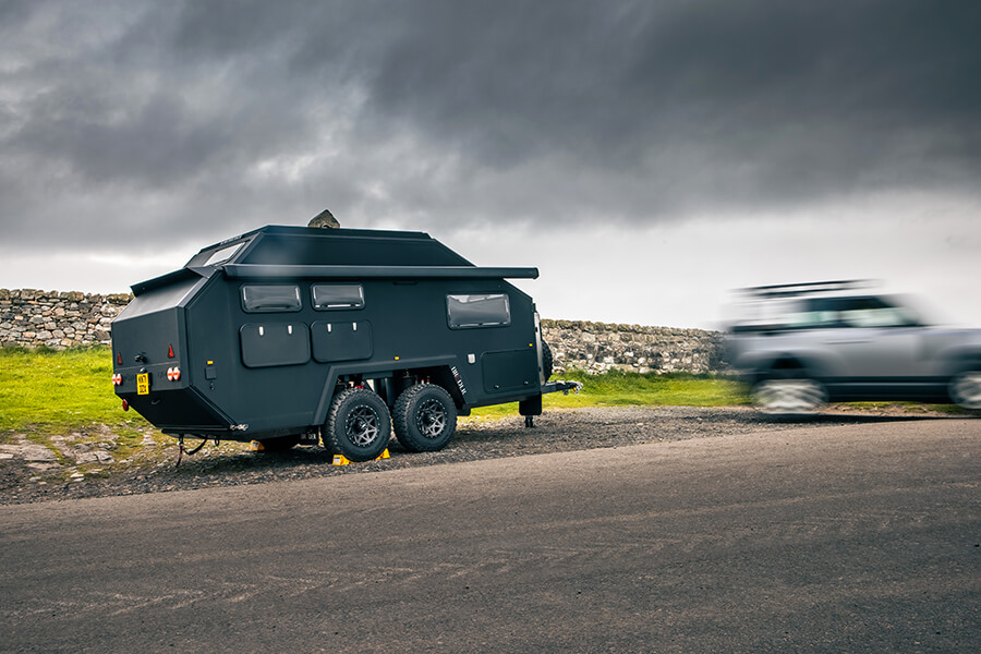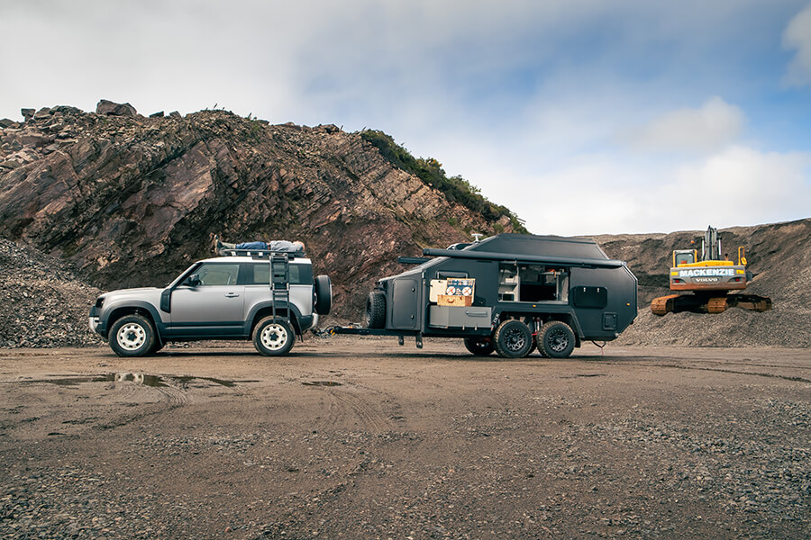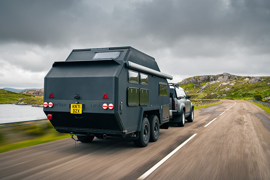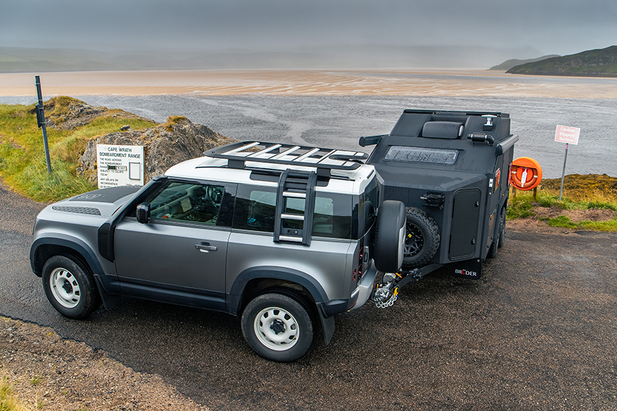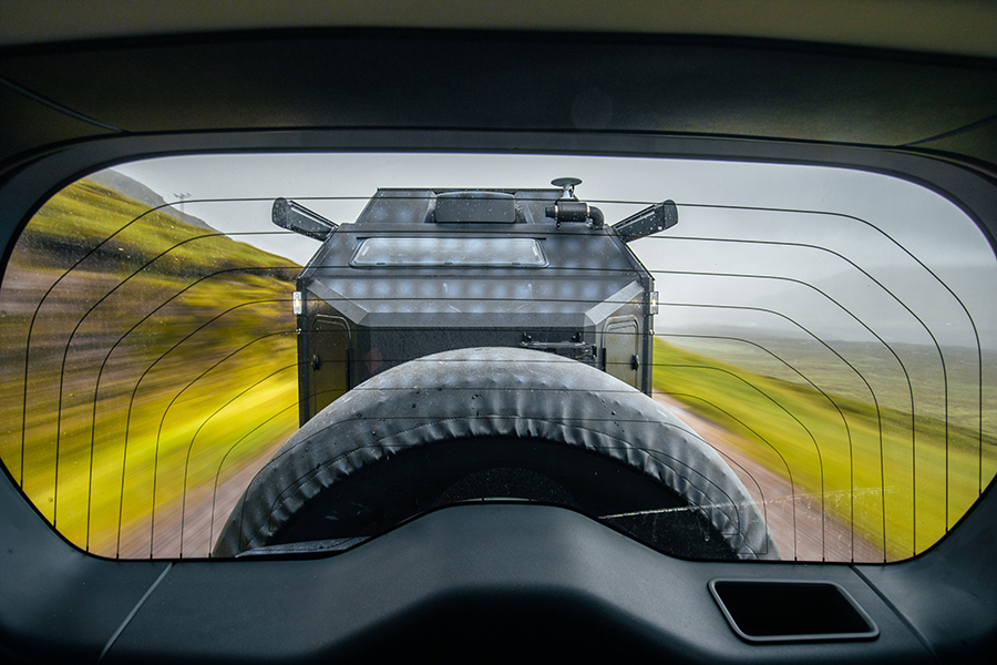 我這時距離基奧代爾只有35哩,所以何不讓我先談之前如何走了650哩左右來到此地。拖著露營拖車上路其實也不是那麼痛苦,事實上當你拖著比牽引車本身還要重的2.3噸重拖車,而且感受到拖車的重量開始發揮影響力,就算只是用95km/h推進也會感覺快得要命,幸好Defender是十分稱職的牽引車。我的話會推薦扭力較強的入門級D250(TG長期測試對象之一),僅以1,250rpm就可以產生58.1kgm意味車手可以放膽拖曳重物,可以輕易維持車速,何況它在此行超過1,450哩(2333公里)的路途上還錄得15.4L/100km平均油耗——這次我們總算遇上一個不會謊話連篇的JLR行程電腦。車上的生活也挺怡人,既有CarPlay,又有手枕,總之輕鬆自在。唯一擾人清夢的是EXP-6的165kg前端重量會像蹺蹺板般搖動Defender 90的短軸距。