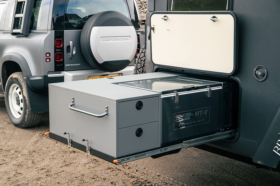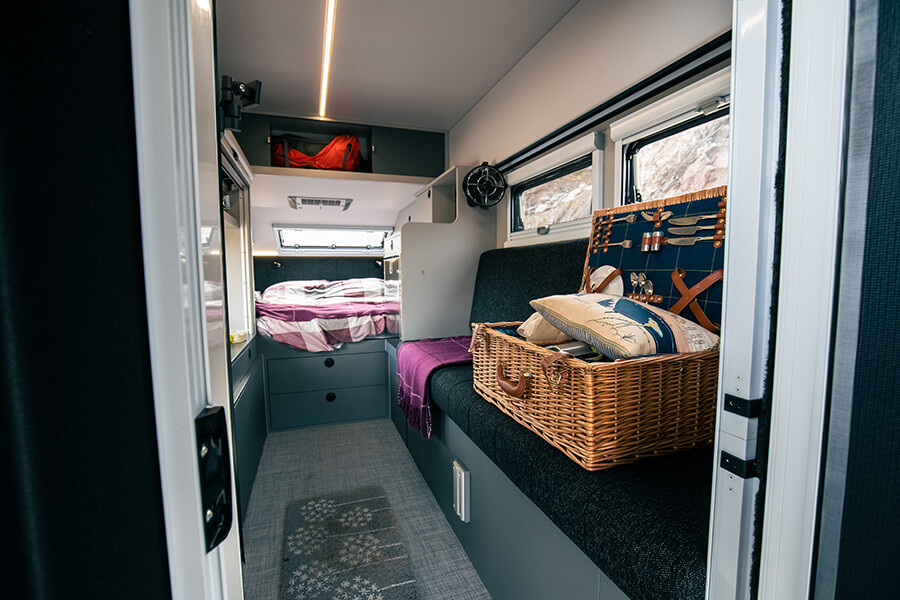 密封艙表面十分粗糙堅固,被樹枝刮過也不會留下痕跡,不過打開闊寬度與拖車一樣的後艙門,便會露出一個比較柔軟的「內膽」,盡頭那邊有一張填滿左右艙壁之間的雙人床,床架鋪了十分舒適的床電。此外還有一張可以變換成睡床的梳妝台、一個設有花灑和廁所的淋浴間,以及煮食設施和一部洗衣機,可見這部坦克擁有十分豪華的野營魂。其他澳洲特色還有一個打通內外的艙口好讓你營造室內或室外烹飪氣氛,以及一個藏在抽屜內的拉出式二號廚房。請留意是拉出式,不要搞錯方向和用法。
