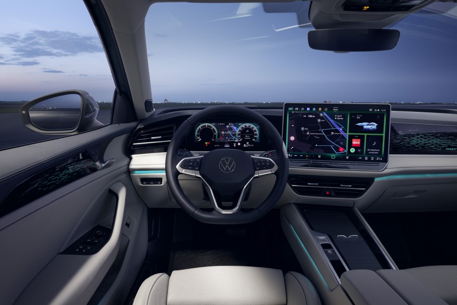 車內則是與先前曝光的Tiguan有類似的架構,都是從8代Golf進一步延伸的造型,同時標配13吋MIB4主機,或是可選配升級到Touareg使用已久的15吋螢幕,駕駛儀表則為10.25吋,而且新車也會提供一套全新的Hud多功能抬頭顯示器,同時投影面積與資訊也會比現有HUD面積放大不少,在Tiguan內裝公開時廠方便曾預告這套系統具備類似AR虛擬實景的效果,但遲遲沒有公開完整資訊,後續大家可以再多加注意一番。