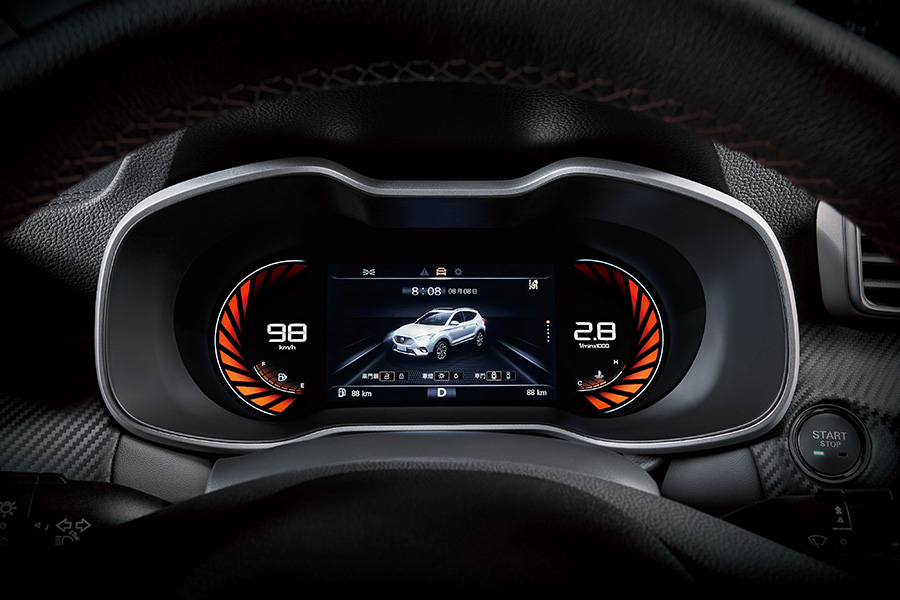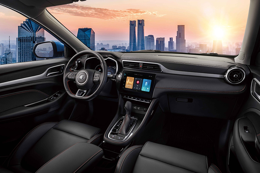 如同發表前就事先預告的,ZS旗艦版的另一大賣點便是標配同級唯一沉浸式全景天窗(附電動遮陽簾及防夾功能),提供充足的採光效果與與空間感。MG ZS旗艦版依循「超規滿配」策略,致力提供消費者應有盡有的豐富質感內裝配備,三幅式皮質方向盤與車內大量軟質、皮質用料完美交織,搭配紅色車縫線的巧妙點綴,堆疊出超越同級的高質感座艙氛圍。全車除了採用皮質座椅,駕駛座內含六向電動調整,同時雙前座椅還擁有加熱功能,並誠意獻上後座冷氣出風口、EPB電子手煞車、Auto Hold智慧自動駐車功能,讓整體乘坐舒適度與操控便捷度更上層樓,大幅提升駕乘體驗。主打科技感的ZS旗艦版不僅標配多功能數位儀表,讓駕駛者獲得清晰明瞭的愛車資訊,還擁有大尺寸的10.1吋懸浮式觸控螢幕,除了內含Apple CarPlay® 及 Android Auto™功能,還整合360度環景影像輔助系統,讓駕駛對車身與周遭環境路況一目了然,停車更能一步到位。此外大尺寸的車機螢幕,無論是進行車輛功能設定,還是播放音樂與掌握導航動態,所有資訊直覺整合,提供饒富娛樂性的數位化使用體驗。