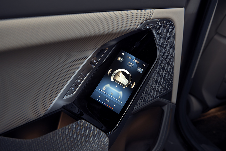 這種自己一手造成的疑神疑鬼妄想症,與i7車廂的氣氛形成了鮮明對比。這個車廂,肯定是目前設計得最周全的車廂。那個iX率先應用的弧形螢幕現已廣泛應用到其他車系,在寶馬推動數位化的過程中發揮了核心作用。這套系統結合了方向盤後面的12.3吋儀錶顯示器和一個較大的14.9吋資訊娛樂玻璃面觸控主螢幕,用起來很方便,就算冷暖氣控制介面全部搬了進去,也沒有造成我所擔心的人體工學大災難,而且意味用家幾乎見不到四區恆溫系統的送風口,善哉善哉。