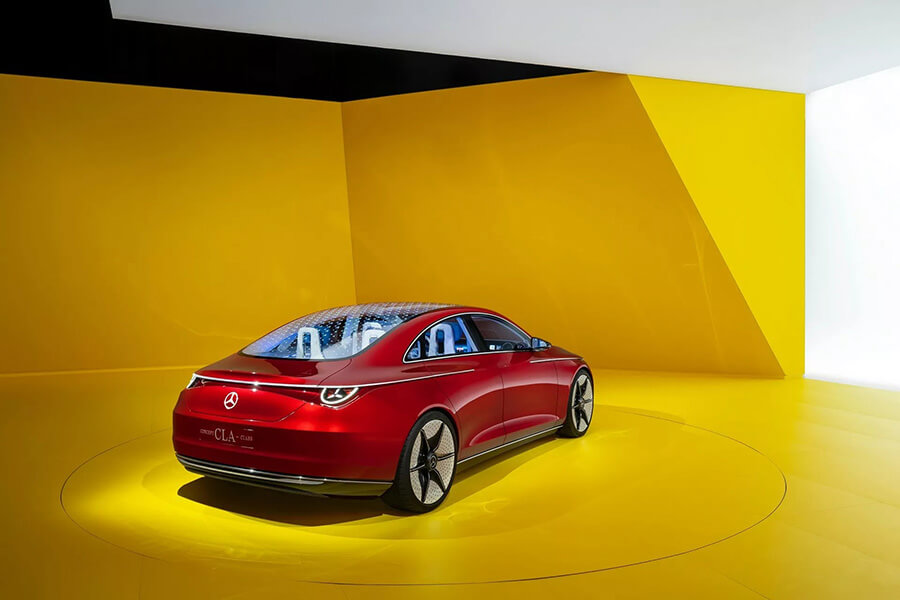 Concept CLA Class 概念車採用全新 MMA 純電模組化平台 (Mercedes-Benz Modular Architecture),以新材料高能量密度電池大幅縮減電池體積,整體結構也比傳統電池更輕更堅固與安全性,800 V 電壓系統提升耐久性,同時擁有較低的冷卻需求,並支援最高 250kW 直流快充,僅需充電 15 分鐘,即可提供最高 400 公里續航里程。