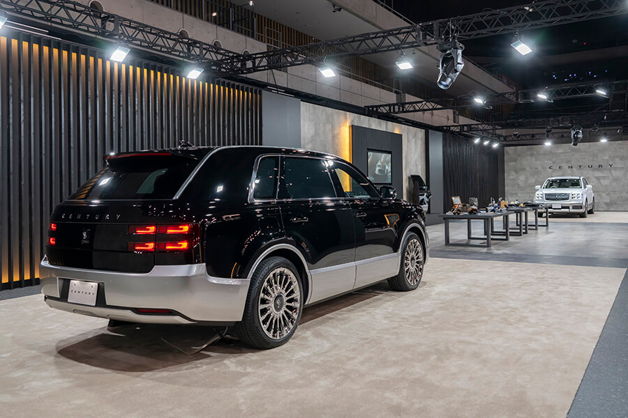 Century的外觀照例由工匠所精心打造,即便改為SUV車型,其特有的腰線、輪廓及表面處理工藝依舊相當承襲Century風範;車頭的鳳凰徽飾則由工匠以江戶時期傳承至今的金屬雕刻手法製作、取自平安時代屏風表面的” 几帳面”車身處理設計加上鏡面拋光的車輛外部,雙層的頭尾設計內部鑲有單邊四條立體LED常亮燈組,再以透鏡顯現出燈光的立體感。輪拱下則以20吋配胎搭配同樣帶有鳳凰徽的鋁製輪圈。