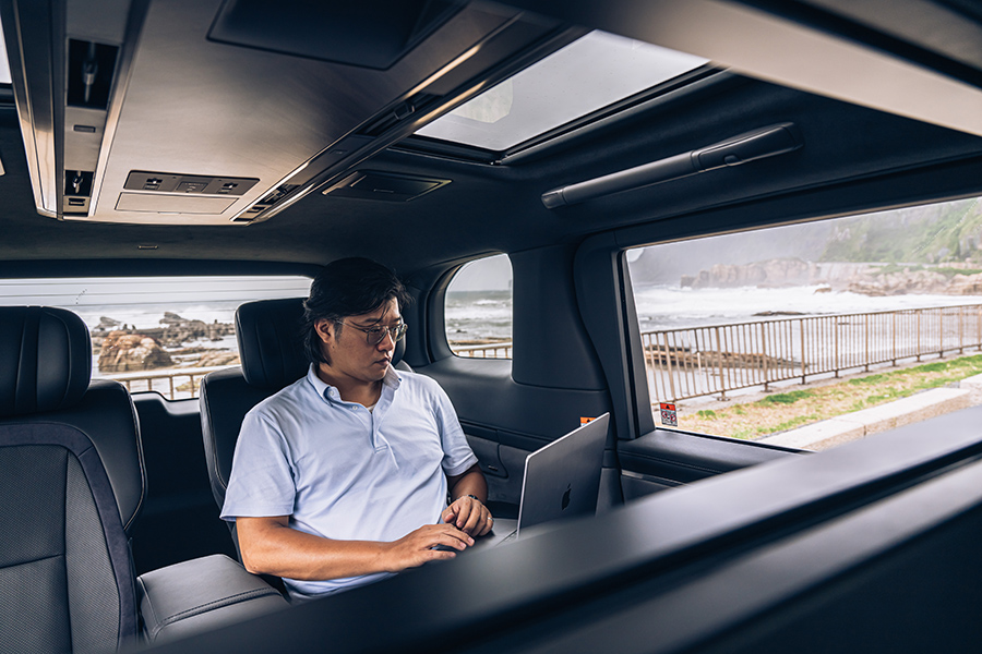 至於在動態表現,這回試駕的LM 350h同樣是那套全新的2.5升雙馬達Hybrid系統,動力數據比起舊款明顯好上不少,加速也確實有顯著進步,畢竟官方加速成績可是從12秒進步到8.7秒了。但我想廠方工程師還是很注重LM整體的發力曲線,因此體感上還是保持很順暢線性的出力,全力加速當然也不會太讓人興奮;但中低速在馬達的助推效果下,新車算是開起來不拖不累,輕輕鬆鬆可以在40~90公里的車速之間穿梭。而這個速度區間也是LM整體動態的精華,新的車架強度與主動底盤對於車身的穩定性與隔絕效果也確實有很大的進步,而且獨有的後座禮遇動態模式也會讓後艙保持安定的狀態,配上很好的隔音,這天正身處颱風前夕的我們還覺得車裡是個很好避風躲雨的環境;但我覺得還是有些可惜的是後座椅設定的位置,雖然廠方有前移來閃避直接承受後軸晃動,但正常乘坐時反而注意到椅背預設角度正好讓我的頭部落在後軸附近,開在濱海公路加上車體本身還是有大重量與車高的慣性,會注意到身體很穩,但肩膀以上有點搖頭晃腦的狀況,好在這些晃動不是頻繁的細碎震動或是大幅搖擺,因此總體舒適度還是很出色,當然在這部車最常出現的都會或高速公路環境,車體、新懸吊與升級尺寸胎圈組帶來的安定度,在後座的體驗顯然已與各家豪華房車打個平手,這時再算上高車身與滑門進出便利性,LM的價值就顯露無疑了。