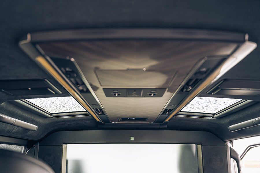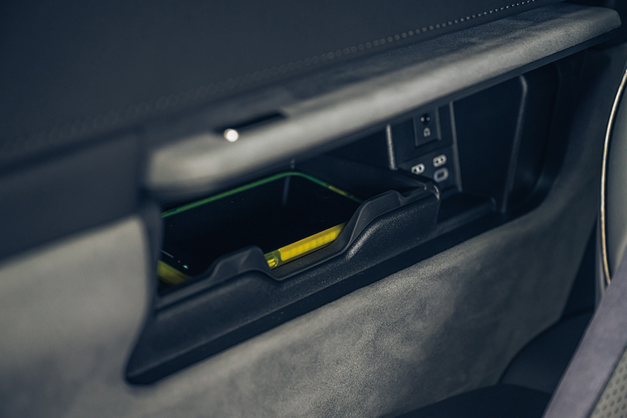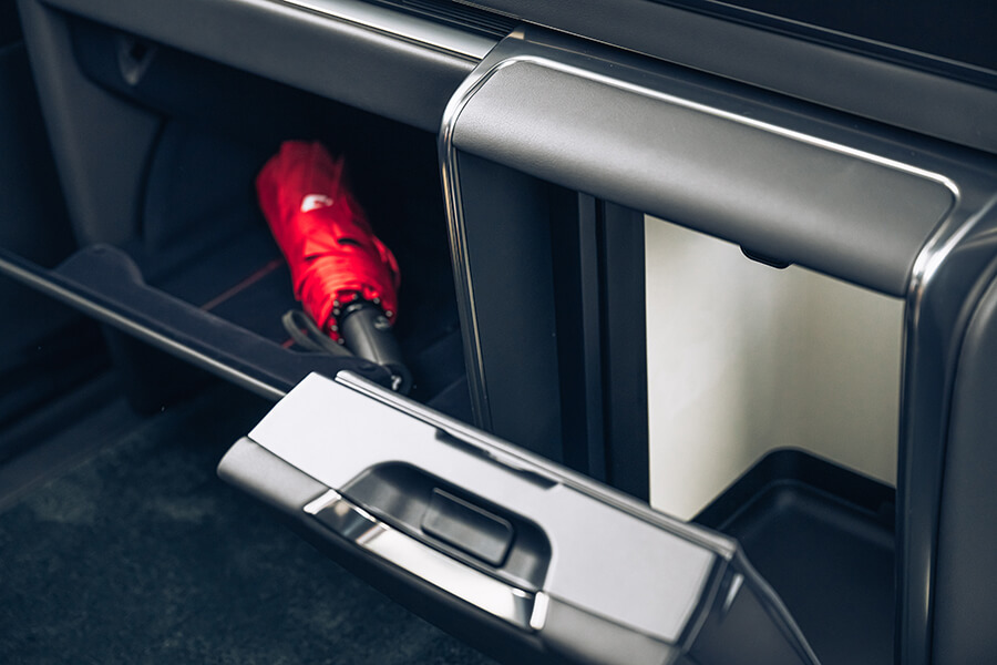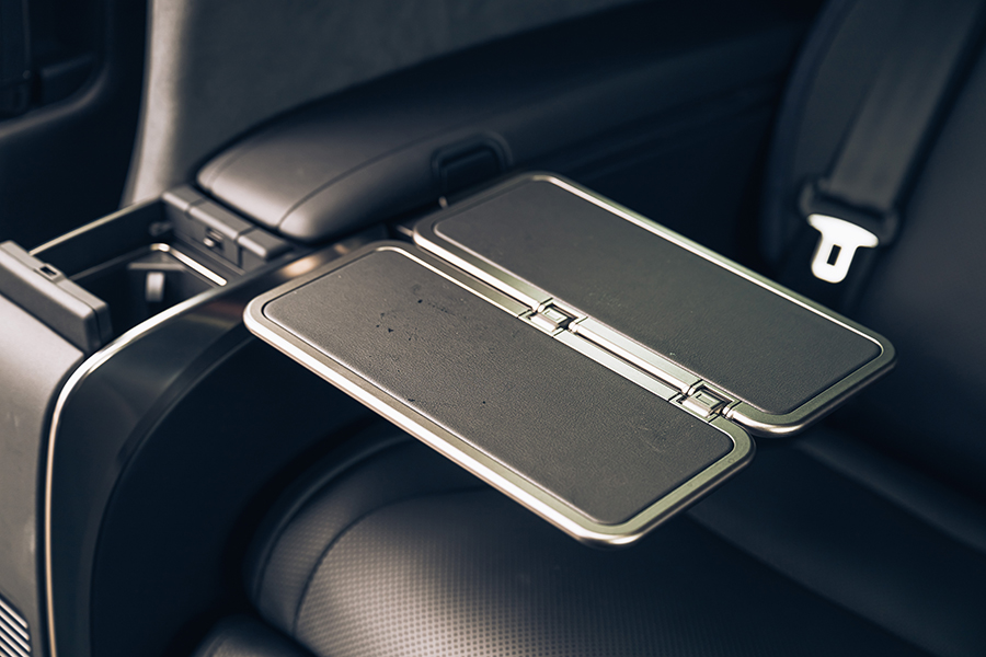 這回廠方還是讓我們試駕附上私密隔屏的四座車型,整個隔屏造型修改的較為平面方正,帶來一些厚度縮減的感覺,但實際上前後艙的隔音表現有高度提升。可分區撥放的音響系統配上新的吸頂式介面以及那塊大螢幕,我的確覺得整體走的是溫文儒雅的氛圍挺不錯。但如果當我分區細看的話,隔屏上半部清一色是平光硬塑料的處理確實有點可惜,若能用上車門飾板的麂皮或其他超細纖維布料包裹一下,我想會更好一些。