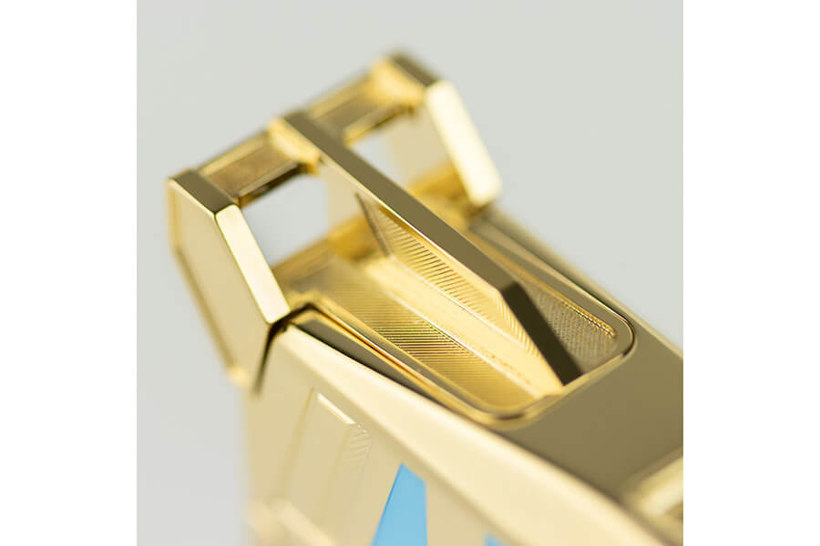 Prestige限量蒐藏套組的靈感源於利曼賽道的標誌性象徵,獎盃、賽車手的頭盔、路緣石顏色等皆作為圖紋的特色。蒐藏套組中,都彭設計一輛在賽道的賽車模型作為裝飾,賽車上的條紋、編號與贊助商的細節,呈現都彭對細節的堅持。藍色漆面和黃金飾面是對賽道顏色、條紋和路緣石致敬,也汲取天空變化歷經早晨藍天到傍晚的色彩,呼應賽事持續進行24小時。筆具底座以Le Mans獎盃為設計想法,筆蓋細節處靈感源自賽車通風設備,尾栓刻紋靈感源自賽車齒輪。而Le Grand Dupont經典兩用打火機的設計以賽車的動感外型為創作靈感。限量蒐藏套組推出經典打火機與筆具蒐藏套組,配有賽車頭盔鑰匙圈,限量288件。打火機與筆具限量蒐藏套組限量188件,搭配一對袖扣。