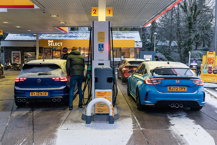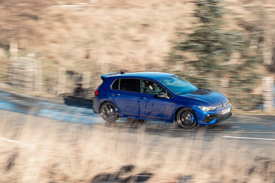不過這支威爾斯遠征車隊的其他成員並非十分符合掀背跑車的範式。福斯陣中雖有245hp的Golf GTI,但329hp本田的47,000鎊售價相對而言未免有點嚇人,所以我們邀約了級數比GTI高的四驅Golf R。這部Golf R屬於小量生產的20周年限量紀念版,最大馬力增至333hp,錶板上有如假包換的碳纖維,彷彿在強調車廂其他部分所用的碳纖維有多假。這部20周年特別版還動用了Performance Pack,極速得以解除封印增至270km/h,後輪的扭力導向半軸離合器更加入了飄移模式軟體。不過提醒大家一聲,我們曾經長期測試一部使用同一升級配件的Golf R,同期測試的汽車還有Cupra Leon 4Drive旅行車(輪軸距比Golf R長,而且沒有扭力導向功能)。我必須指出在公路你追我逐時,根本很難察覺兩者有甚麼分別。