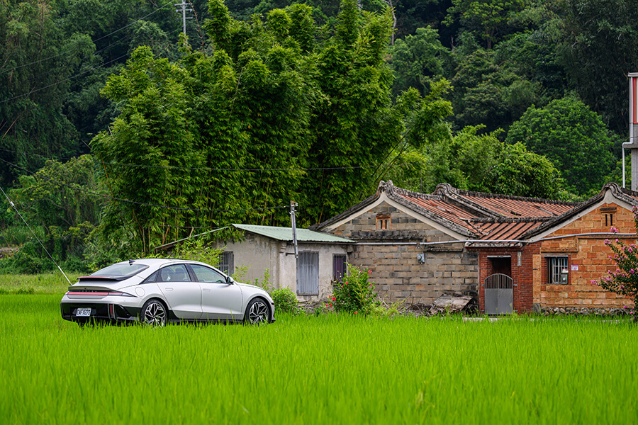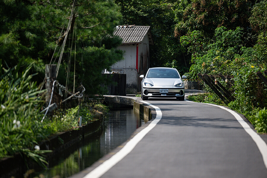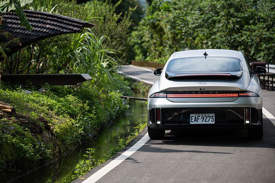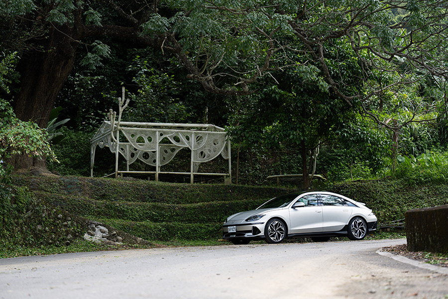 是的,就是這一部Ioniq 6,不久前才趁試車空檔短暫向Jason交換開過一段吶。選中它的原因不完全是當時被它充盈動力、流暢動態所留下的深刻印象;更多的是它這一身如同被風撫過的流暢身軀:0.21 Cd的風阻在風大的高速公路間感覺不到一絲風切聲,或是任何被氣流阻擾的不尋常晃動及阻力;況且用這麼一部充滿優雅曲線的4-door coupe、還是受2023年度設計風雲車獎項肯定的作品踏上這趟藝文road trip,你倒說說,還有甚麼比這更加適合的?