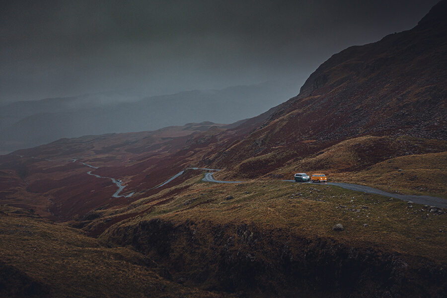 事發一刻,我們正沿著英格蘭湖區的Wrynose山路奔往英國最崎嶇陡斜公路之一的Hardnott山路,打算讓ID.Buzz跟它的20世紀前輩較量一下登山功夫。這個任務絕不容易,因為Type 2的原裝後置氣冷式引擎向以稍為上坡就很容易過熱而著稱,眼前情況似乎證明了它果然「名不虛傳」。