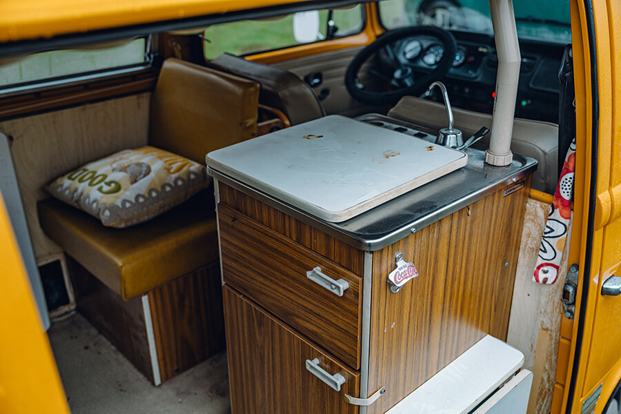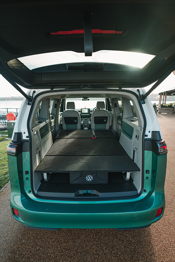 你我不難看出福斯很明顯想透過Buzz重新演繹Type 2的形象,這一點從兩邊呈向後包抄的擋風窗、滑動式側門和虛有其表的通風槽可見一斑。不過撇開古怪設計特色不談,Buzz和Type 2其實別無其他共通之處。ID.Buzz如今的角色只是比一款擁有江湖聲望的MPV好一點點,Type 2則備有數之不盡的個人化改裝配件。好像這次出場的一部,之前就被主人改裝成裝備齊全的公路長征版,與這部Buzz的車廂簡直天差地遠。
