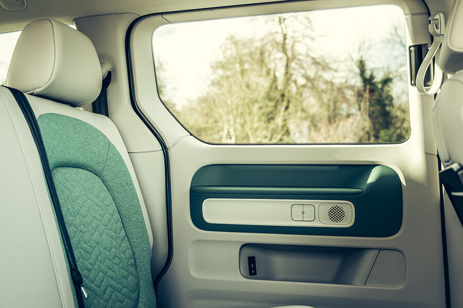 雖然底盤與私家車同源,但ID.Buzz採用了客貨車包裝手法,基本上就是一個四方盒。擋風窗遠離前座,座椅上的你會垂直小腿挺直上半身,可以理直氣壯憑著自己的博愛電動車與鼻息沉重的AMG G63平起平坐。不過你這那張高高在上的駕駛席,其實安裝在一個設計粗疏佔用了後邊乘客腿部空間的底座上,所以較之矮小的特斯拉反而為五位座上客提供了更多腿部空間。Model Y的包裝手法其實更高明,車頭行李箱當然包括在內。