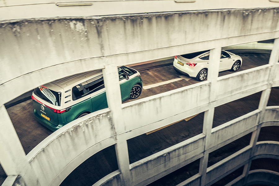 一提起露營客貨車,很自然會聯想到福斯;一提到電動車,很自然又會聯想到特斯拉。因為特斯拉好比電動車的同義詞,就像Hoover代表吸塵機,Biro代表原子筆。不過我在以下不會只談續航力和充電問題,而是涵蓋電氣動力在空間佈局、舒適、動態等等其他方面做得到甚麼事。就此而言,ID.Buzz清晰反映了自己源於一間掙扎著數位化的八十五年歷史德國汽車老字號。特斯拉也反映了自己的根源,源於一間掙扎著克服汽車生產和人體工學的十九歲加州科技公司。