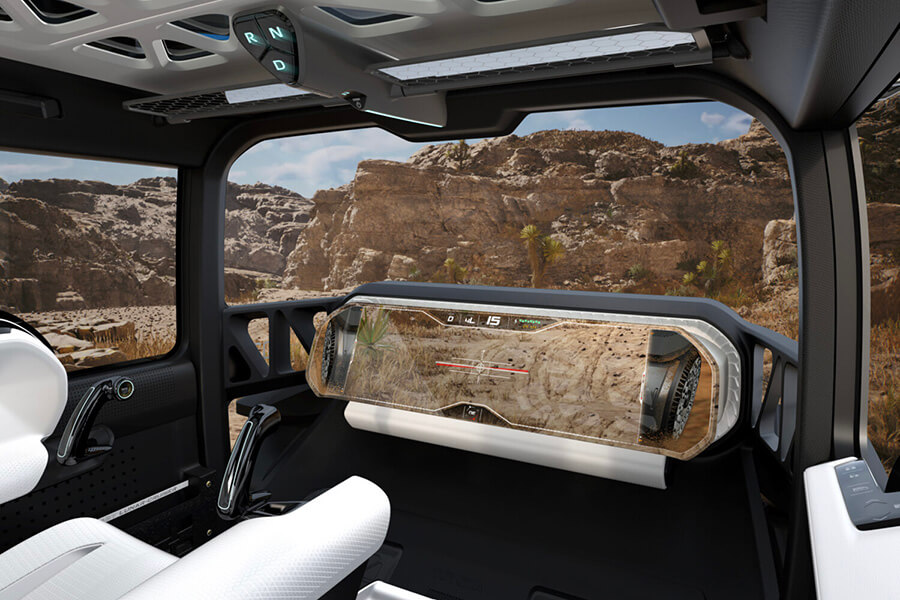 目前關於此車的資訊除了幾張圖紙之外,我們還知道它將由輪轂馬達所驅動、同時駕駛將以兩支操縱桿來進行操作,而非任何形式的方向盤。透過車內畫面還可以看到車內中控將被超大型螢幕所佔據、並具備擴增實境功能儀表;車外則使用網狀的免充氣輪胎―畢竟你不會想在一個毫無空氣的地方爆胎的。