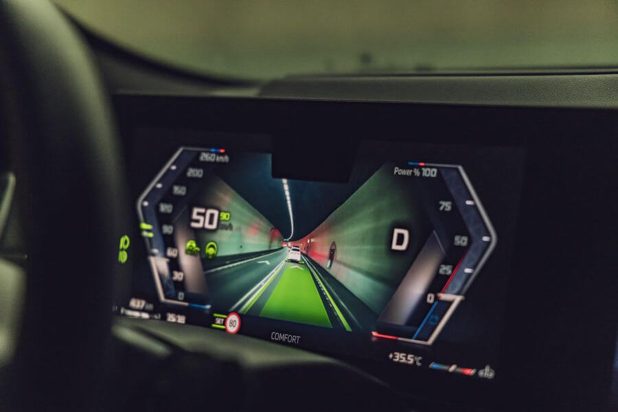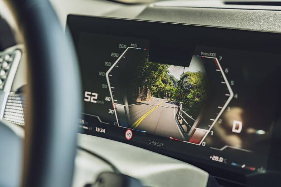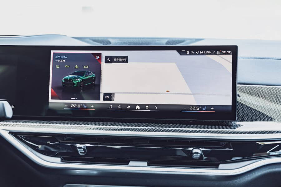 打開ADAS系統隨著國道上車流返程,全新一套的iDrive系統和數位儀錶的功能確實族繁不及備載,其中在儀表中的AR實景顯示或許再過幾年就會轉由HUD畫面裡看到各種偵測定位或是距離警示效果。同時iDrive系統螢幕成長到14.9吋,寬比例的設計讓顯示介面也有更清楚的區分位置,畫面左側的常駐訊息也有很多不同的資訊頁面可供選擇判讀,配上觸控或是旋鈕雙介面的控制方式,這天攝影也就不用時時忙於清理我選擇示意畫面後的各種指紋,而且在把玩旋鈕介面時也會帶來一種特別的使用心境,雖然也可以只出一張嘴就能處理不少事,但我覺得是一種保持手、眼、腦協調的操作,也是另類有助於身心健康,而且旋鈕與排檔撥桿的水晶材質處理,在豔陽下還會帶來媲美星空頂蓬的另類彩蛋吶。