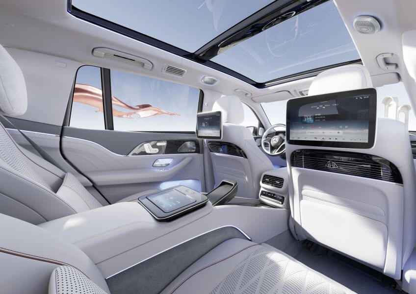 全新 Mercedes-Maybach GLS 600 4MATIC 頭等艙級座艙,可選擇標準五座或獨立雙後座,座椅採用 MANUFAKTUR 全新菱格紋的豪華 Nappa 真皮座椅,共有棕、黑及水晶白三款配色可選擇,其中絕對不容錯過水晶白與玫瑰金滾邊的經典豪華遊艇配色;除了舒適的行政座椅,Mercedes-Maybach GLS 600 4MATIC 標準配備 29 具高傳真喇叭構成的 Burmester® 高階 3D 環場音響系統,並提供領先業界的 DOLBY ATMOS® 杜比全景環繞音效,創造絕美震撼的奢華聽覺饗宴。此外,Mercedes-Maybach GLS 600 4MATIC 提供 MBUX 後座影音娛樂系統,透過設置於前座椅頭枕後方兩具 11.6 吋觸控螢幕,後座乘客便可享受完整視聽娛樂體驗。奢華體驗不僅止於此,Mercedes-Maybach 還特別打造專屬車內香氛,散發淡雅白桂花香,並以柔和皮革與茶香襯托高貴圓潤的氣味,透過 AIR-BALANCE 負離子空氣清新套件完整揮發至車室空間之中。