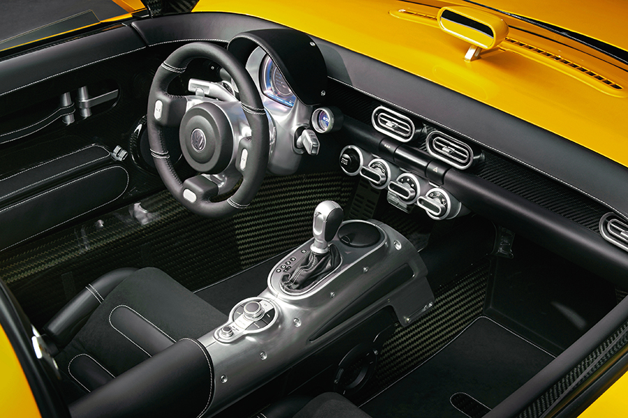 真正話題來自那個車頂(儘管有嘩眾取寵之嫌)。EcoRacer好比一個油站三支槍,是貨真假實的三合一汽車,標準格式是一部正正常常的轎跑,車尾裝有一個類似breadvan的延伸部分以改善空氣動力效率。若有需要在車尾門上安裝行李架,大可以把這個延伸部分拆除。車頂的主要部分亦可以拆下來,以此變出一部roadster。如果再把裝拆式擋風窗卸下來,便可以搖身變成speedster,讓你盡情領略昆蟲撲面來的滋味。