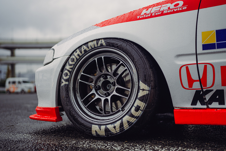 就緒方桑的EK9 Type R和柳桑的EG6 Civic而言,賽車花紋的意義原來並不限於得其形,還帶有一份向啟發他們的年代致敬的心意。不過這些花紋並非依樣畫葫蘆那麼簡單,而是具有本身的獨特設計。「我十分尊重EF Civic在1991年JTCC錦標賽所用的(花紋)設計,我這部車的花紋由創作Idemitsu Civic的好朋友設計,目的就是紀念當年的出光Civic。賽車應該擁有與別不同的外形,給人與別不同的感覺,速度也得十分凌厲。」