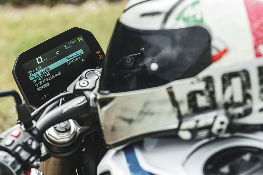 有空的話請一一回味十年前、二十年前的運動摩托車款樣貌吧。不知不覺間,它們的設計都隨著時代變遷,明顯更加緊湊且玲瓏有致。而仔細拆解BMW在S1000R上成就這一切的要件,其中除主要包含將引擎更高程度納入受力結構的Flex Frame車架,使左右膝夾持車身的寬度再度縮減外,更在精簡化車輛的基本構成下減輕了6.5公斤;若是選購我腳邊這款M版車型,還能更進一步有M鍛造框、輕量電池等零零總總達4.8公斤的減重程度。儘管依然感受得出四缸車帶來的寬度,S1000R緊緻的機械配置與重量安排倒讓穿著連身皮衣的我,依舊能氣定神閒地為攝影球褲喬好車輛角度、展示各項功能,「這儀表太美!」是當日在場人員最快產出的共識。但它不光只是美,其中包含三種涵蓋傾角、減速度、DTC循跡等資訊在內的不同儀表layout、車輛資訊、導航、音樂,乃至於賽道模式下可調整的引擎煞車、DTC段數、防浮舉系統、ABS設定及pit限速器設定等等目不暇給的功能,藉由左把手上的滾輪及一旁的Menu按鈕就能控制自如。雖然部分操作選單分層仍位處較深層,不過大致上是以日常實用到專業競技由淺至深的安排,同時車速與檔位等基本資訊亦隨時常駐儀表頂端、特殊的介面分層無論從何處回到主儀表也簡單到無須思考,日常與休閒騎乘間的操作其實也不會感到有甚麼窒礙難行啦。