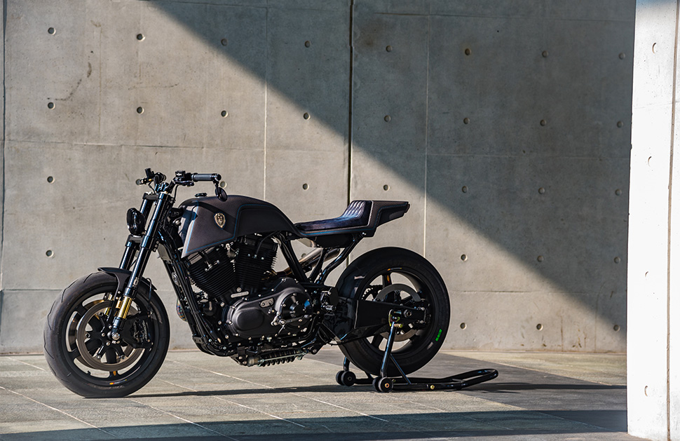 小編經由某個機緣之下,與Winston有了初步聯繫,得知旗下最新作品Raging Dagger適才呱呱墜地,TG當然不容錯過這堪稱藝品的見證時刻,便相約春宵一刻共渡尋歡作樂,時間一到我馬不停蹄來到約會地點與會,眼前所見這匹精雕細琢黑馬,難以想像來自一台哈雷Sportster 48所打造,Winston道出歷經一年的鬼斧神工,結合台灣時下最優質工匠群合作而成,一年後的今日,便是輛獨一無二的國產手工客製靚品映入眼簾。