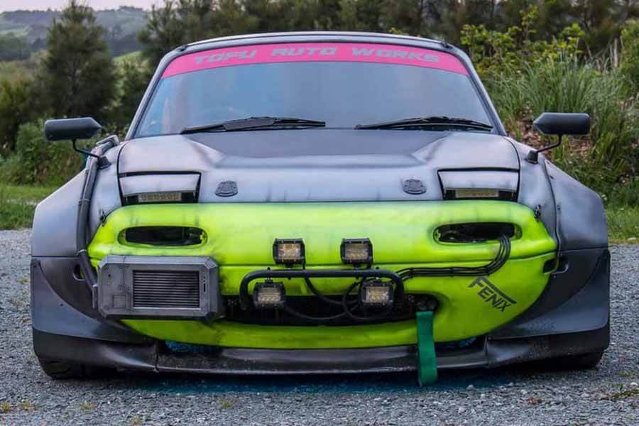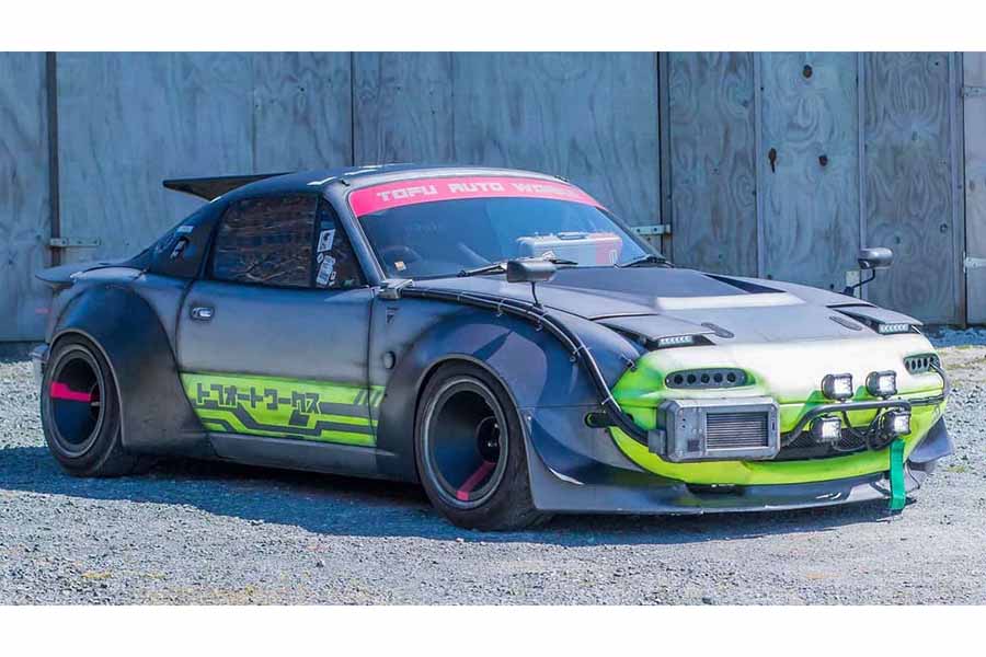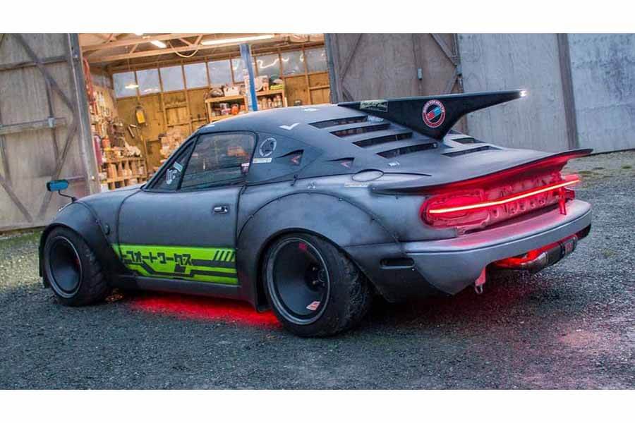 車主Chris Watson在紐西蘭北方的一處棚屋裡一手打造了這部車。原先他打算在這輛MX-5上結合Cyberpunk主題、與日本暴走族中”Kaido Racer”風格(通常擁有推土機般的前唇、與工廠般高聳的排氣管…你知道的)相結合,最後的成品卻彷若從遠在數光年外的反烏托邦世界穿梭而來。