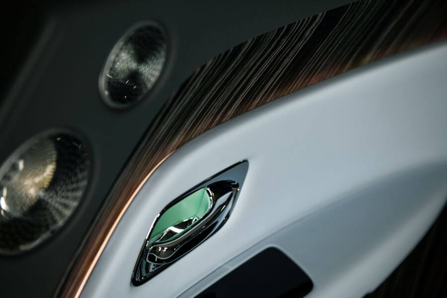 Spectre 的問世,見證勞斯萊斯開創了一個全新且獨一無二的汽車類別 — “超豪華電動超級轎跑車”(Ultra-Luxury Electric Super Coupé)。其代表了 Spectre 極具氣場的設計以及旨在為客戶專屬打造的奢華車內空間。勞斯萊斯設計師們無不深耕於汽車領域,不僅如此,他們也需要從汽車領域之外汲取靈感,其靈感來源包括高級時裝、現代主義雕塑、航海設計、高級定製剪裁及當代藝術等。構思 Spectre 的設計草圖時,勞斯萊斯設計師們的創意便受到現代遊艇設計理念的啟發,特別是其至簡完美的車身線條、對於光感反射的巧妙運用和呈錐形的靈動設計,賦予車身輪廓更為豐富的情感。從車頭看, Spectre的分體式前大燈與勞斯萊斯史上最寬的前水箱格柵相輔相成。帕德嫩神廟式進氣格柵的葉片更加細膩平滑,用於引導車輛前部的氣流。