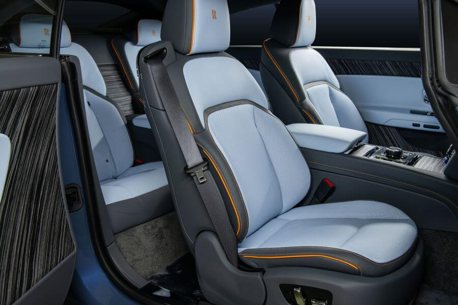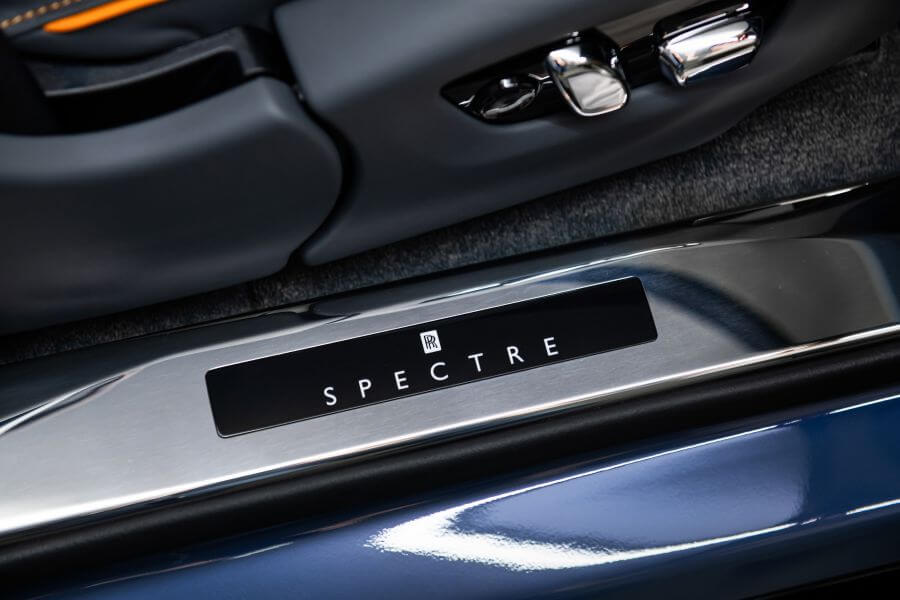 Spectre 的內飾設計靈感源於雋永神秘的夜空,也是勞斯萊斯首款配備星光車門(Starlight Doors)的量產車型。該設計以4,796 顆柔和光點營造出璀璨星空。其車門可定製 Canadel 木質鑲板作為背板,Canadel 木質鑲板的命名源於法國南部的海灣,這裡曾是亨利·萊斯爵士 (Sir Henry Royce) 和設計團隊的冬季工作地點。