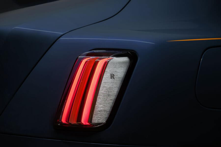 車身前部的艙蓋線條設計將視線引向車身側翼。車側底部的飄馳線靈感源於遊艇設計。 Spectre 沒有採用複雜的裝飾設計來誇大車身的運動感,其車身線條向底部收合,更為靈動, Spectre 車身輪廓中最引人注目的無疑是斜背式設計,頗似歷史中令人難以忘懷的汽車和船艇。其流暢的車身上部輪廓沿著車頂線條向後到達後方的尾燈。 Spectre 的垂直尾燈耀如珠玉,其內置燈殼本身無著色,以便客戶在定製時可選擇無限色彩搭配。該尾燈設計精密、較小的尺寸使得車身線條由動感的車輛肩部向車輛尾部聚集,同時顯示出了車身獨特的錐形收束設計。
