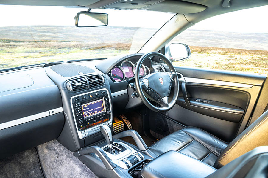 我會搶先承認初代E1 Cayenne看起來仍然談不上格外漂亮,可是這身大地任我行變裝真的很趣緻,粗紋輪胎和車頂行李架與初代Cayenne比較硬朗的造型相輔相成,而不是試圖掩飾其豪邁氣質,個人大致上亦十分受用。這身變裝是英國Porsche Classic的作品,正好為苦於摸索E1靈魂的你提供了一扇較為完美的觀景窗。這次變裝的Cayenne是S版,意謂車上有一副夠你用7.2秒完成0-100km/h加速,平均油耗大約14.9L/100km的4.5公升340hp V8,動力分佈也是偏重後驅。