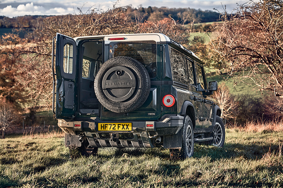 Ratcliffe視設計為關鍵特質之一,Land Rover重新設計的Defender卻未能博得其青睞。Grenadier一往無悔四四方方,用意主要是盡量擴大內部空間,車輪也盡量貼近四邊角落以縮減懸長,前輪拱頂部的平坦程度夠你擺放一大杯茶或手提電腦,在車頂和車頭車尾設有接線出口的外部配線則方便安裝輔助照明系統,買家還可以額外選配一套附有通用行李固定系統的實用行李軌。車尾門採用三七分割,左右兩邊一併打開的話,空間足夠歐洲標準棧板進出尾箱,除此之外還可額外安裝一個帶鎖儲物廂。
