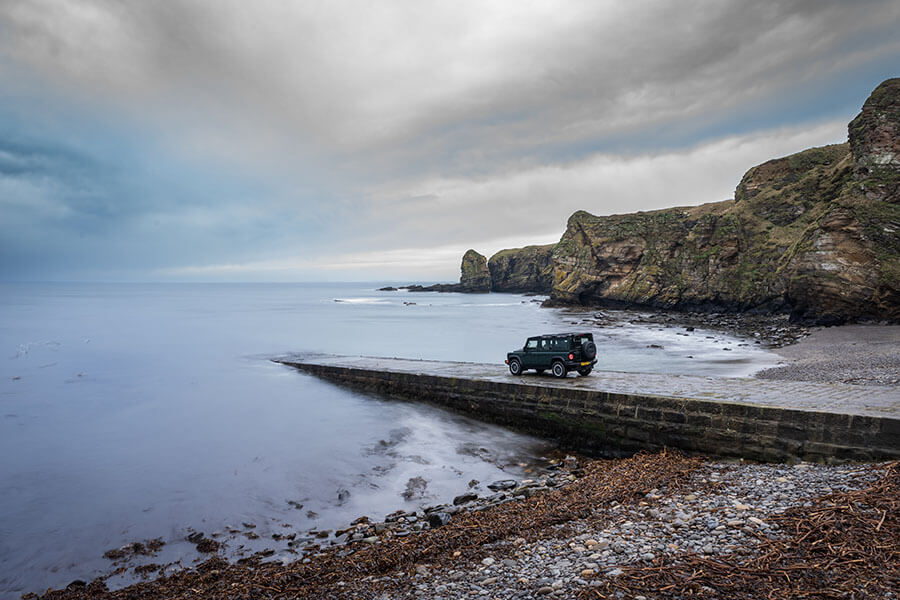 為了證明實力,他們還安排了一個探險活動。我們此刻身處的地方,是各位在蘇格蘭大陸一失足便會墮進北海的最北端。這裡也是North Coast 500的所在地。這是一條彎彎曲曲風光如畫的環島公路,備妥所有讓Alpine A110之流大展拳腳的條件,不過對於0-100km/h加速需要8.6秒(汽油版)或9.9秒(柴油版),車身傾側幅度又相當有趣的2.7噸重越野車來說就不是那麼妙了。話是這麼說,但我們亦不見得會長時間留在公路上。因為我們打算橫越大家很少見的蘇格蘭大地,除非閣下是棲息於這一帶的老鷹或野鹿。