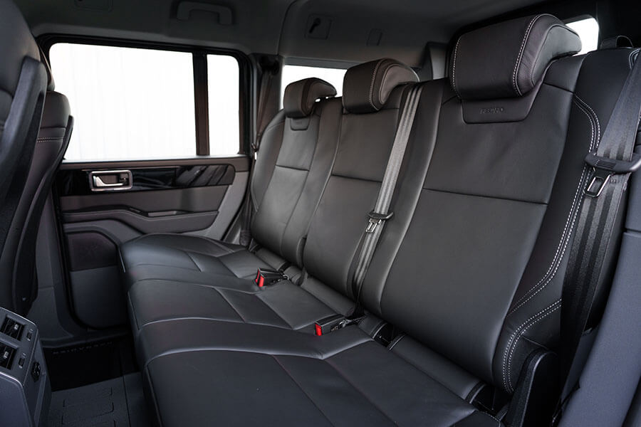 若說Grenadier也有賣弄設計的地方,大概就是車頂那個鑲有多個越野功能開關的控制板,控制板上的按鈕包括了車軸差速鎖,以及絞盤、探照燈等等已接線周邊裝備的輔助開關。至於其他控制裝置,寶馬出品的檔位選擇器與旁邊用來操縱加力箱的粗裝槓桿相比之下似乎有點份量太輕。Recaro座椅和駕駛位置好的沒話說,儘管這些座椅只能用人手調校。標準裝潢所用的布料和塑膠一律具有防污防塵防水作用。司機和副手頭上的瞭望窗是Fieldmaster版本的標準裝備,其他版本亦可追加。停車感應器是車尾標準裝備,車頭那邊則要另外收費。喔,Ineos亦備有車尾攝影鏡頭供選購。