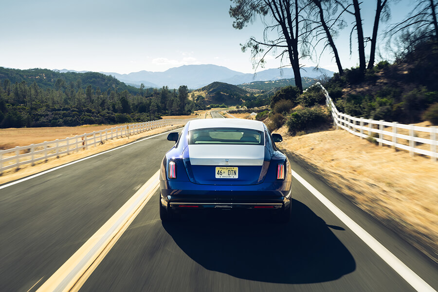 如果你登上Spectre的地方是……就說加州西北部的繁忙街道吧,有些古怪事情會變得非常顯眼。你會突然間覺得自己災難性失聰,因為Spectre的雙重密封玻璃會把所有外來噪音阻隔掉。這一招並不涉及甚麼數位技術,就連Ghost的主動抑噪技術也沒有動用。事實上勞斯萊斯得設法讓某些環境噪音免遭過濾得以滲進車廂,因為Spectre的隔音功夫實在太厲害,原型車便試過因為太安靜而令試車員覺得聽覺不平衡。不過放心吧,完成品只會令乘客第一時間覺得寧靜祥和。