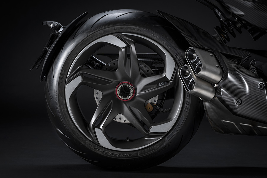 想當然耳,在此Centro Stile Ducati 與賓利設計師合作,從 Batur 的側面線條中汲取靈感,為這款特殊摩托車打造了全新設計。從來自賓利 Mulliner賽採選項、精緻而富金屬光澤的聖甲蟲綠烤漆、重新設計整流罩及油箱的曲線起伏、呼應Batur的引擎蓋與車身,當然還有還原Bentley的鑽石切削鍛造輪圈造型,甚至遵照Batur格柵上的紅色三角翼片點綴都包含其中…這不是”大家來找碴”遊戲,但各位都一一辨認出這些隱微的小細節了嗎?