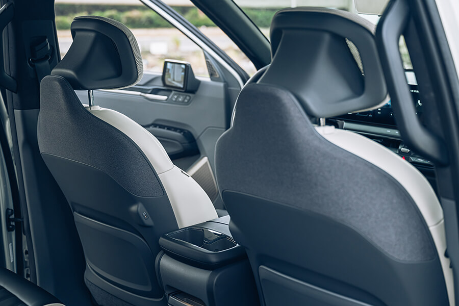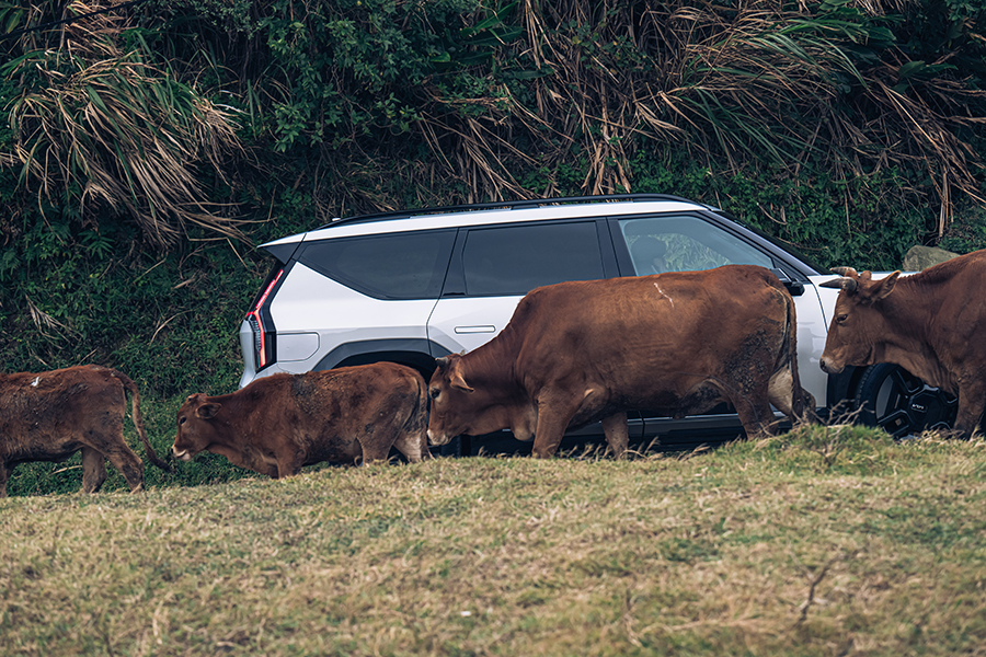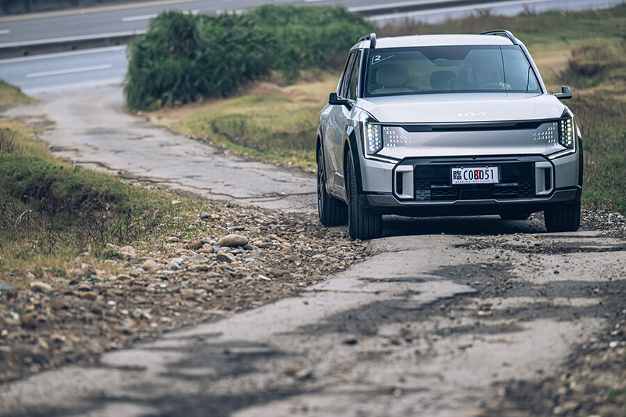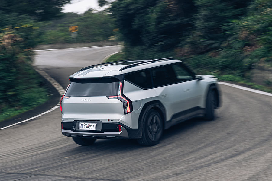 不過畢竟車重負擔大,EV9也就不算特別擅長於熱血操駕這個領域。但它也給我一種配重得宜以及懸吊設定均衡的體驗,即便不是高級的氣壓或電子避震,這套懸吊的控制反應算是拿捏在一個適當的區間,在讓人感覺得舒適的大前提下,也在穩定動態這方面表現良好,所以整車的駕駛反應並不顯得笨重,而是帶有一定程度的積極與靈活步調,因此易駕性以及在山路上的駕駛趣味都讓有不錯的表現。再來則是EV9在移動質感這方面確實做到能與現有高級品牌互相比拚的能力,例如大量隔音玻璃以及寧靜又滑順如絲的電動窗馬達,從許多小地方就逐步堆疊出高質感。但車艙在某些細節部件的配色、用料或裝飾手法,給人一種在一片高品質氛圍下”露餡”的小狀況,例如像車門板上的烤漆飾板,或許用上車艙其它同樣的大面積木質或網布鋪面,會讓車艙更有一體感。