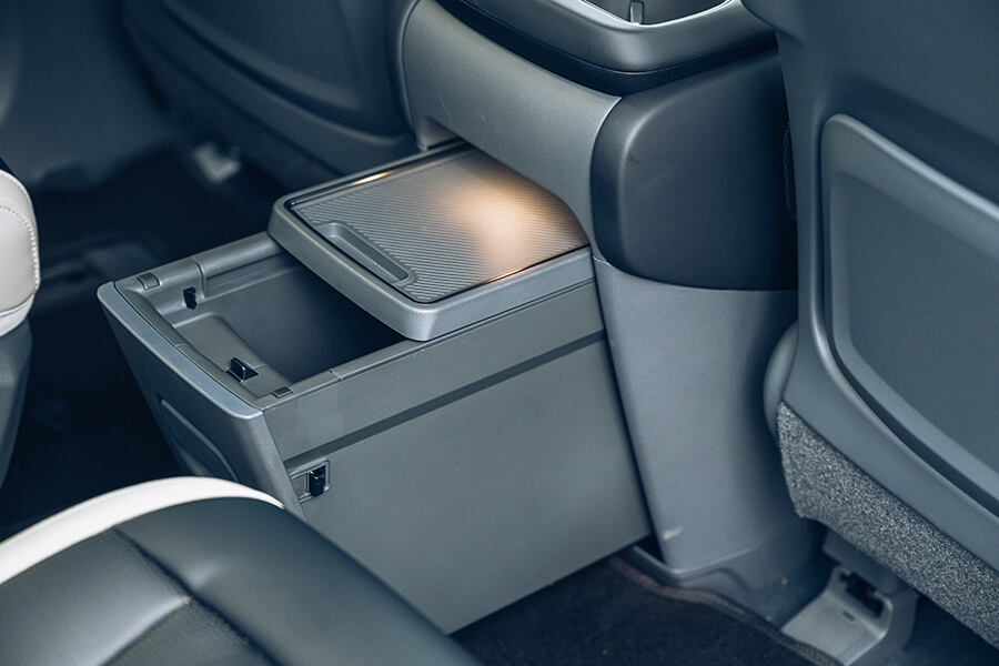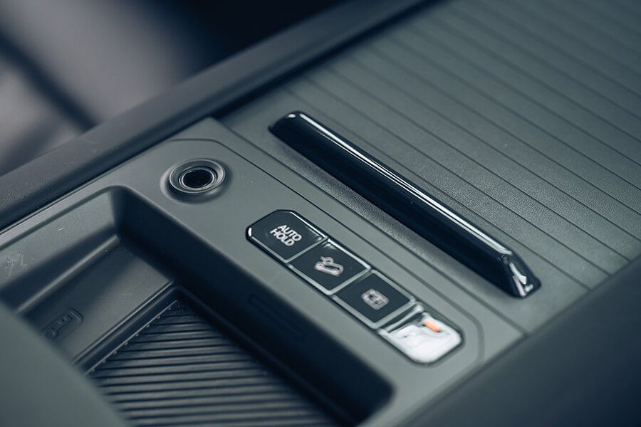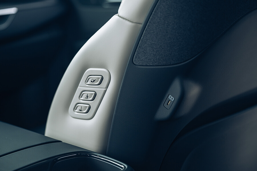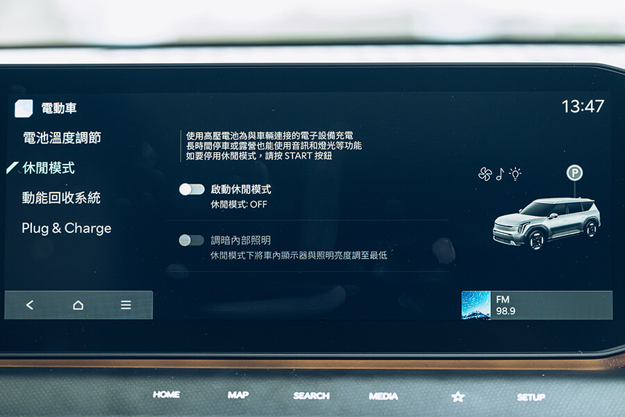 車輛內裝功能不算陌生,一體式的大型橫式螢幕中間是三面不同功能的螢幕組成,兩側是現在大家都熟悉的數位儀表與多媒體主機,廠方目前也都提供完整的中文介面,同樣可以在這裡便切換設定那族繁不及備載的各種功能設定,例如你要動能回收的整體調性,還是模擬音效的各種選項,現在有了充分的中文顯示可以引導使用者做出選擇,但稍微免不了穿越多層選單來回的問題,另外一些主機本體的數位雲端服務暫時還在廠方的努力中。但好在EV9很聰明的放上一套可記憶兩位使用者的指紋辨識功能,幫你把自己最順手的車輛設定與狀態儲存其中,使用性也非常直覺,還可作為鑰匙不在車上卻臨時要發動前的辨識確認,只可惜前面提到的數位雲端服務還在努力中,這項功能還不能發揮它的全數實力。