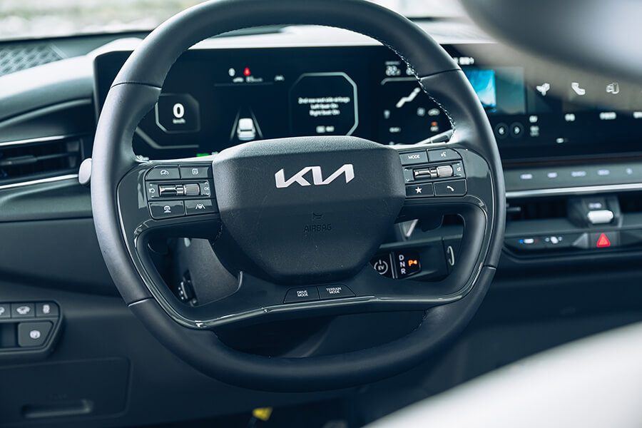 EV9體態以及印象給人很SUV,但實車沒那麼SUV。反而在車高、乘坐高度以及進出車艙的身體移動體感上很MPV,其實讓我覺得跟Carnival頗有雷同之處,待在車裡的空間感也有點類似,我會用很厚而不是很高來界定EV9,這點大概是因為極其方正的車體造型給了車艙空間很好的開闊感,假設以類似尺碼的SUV對比的話,EV9並不如Defender那樣高聳入雲,給人很強烈的威嚇壓迫,EV9反倒是在很科幻的外觀下,給人一種很親切的接觸感,也許大家屆時看過實車後,會更清楚這種感覺,而且這個感覺可能就會讓你最後付訂下單的機率先拉到60%。