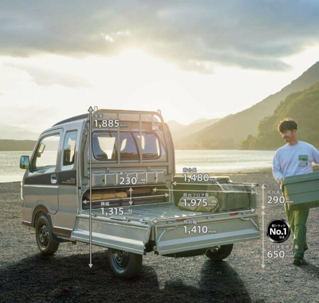 Super Carry其實已是日本當地行之有年的Kcar級貨卡,總長僅3.4米不到,近期日本鈴木推出了一款 X Limited特式車款,換上目前流行的戶外風格車色還有外飾板的搭配後看起來就很個性化設定,而且該車也使用俗稱1.5廂的加長式車頭,上座椅可傾斜40度並擁有180mm的滑動距離,換來更輕鬆的座姿與空間使用方式,後方則是搭配長寬為1.48 x 1.41米的貨斗,最內側還有一個可以延長約50公分隱藏空間。