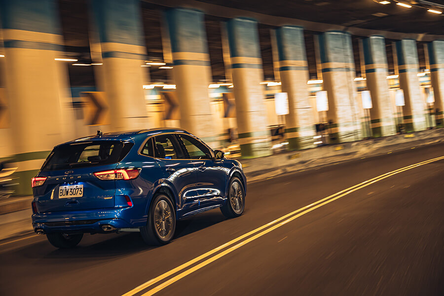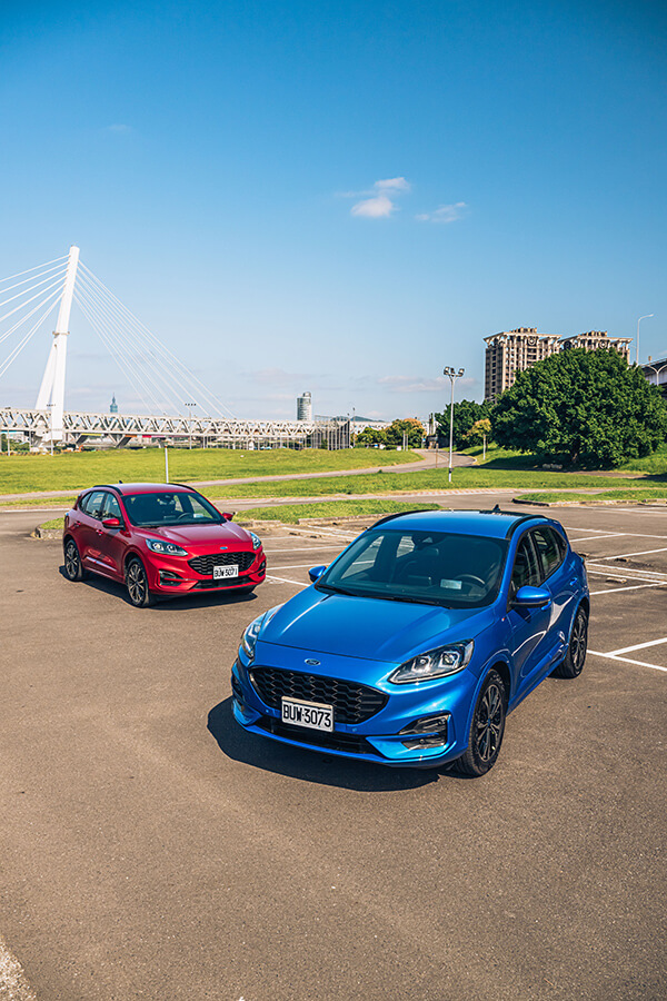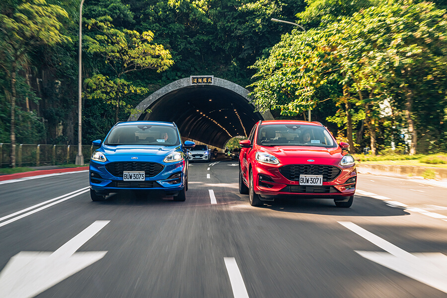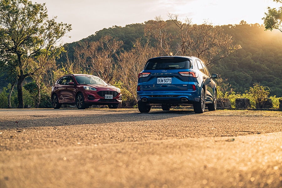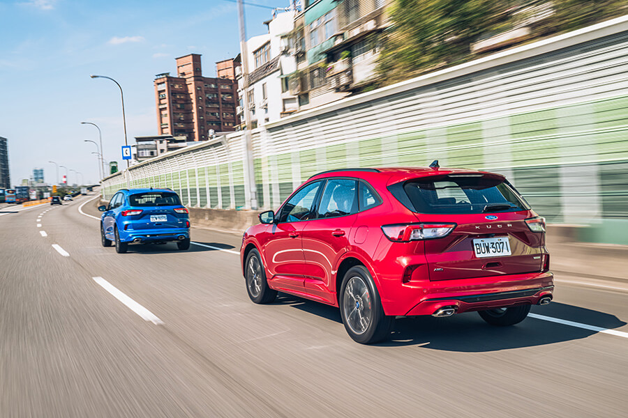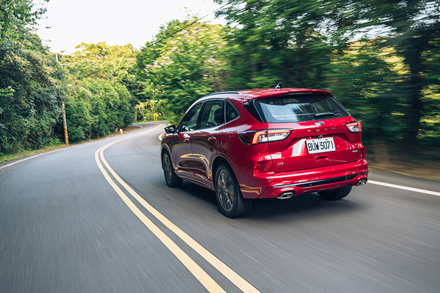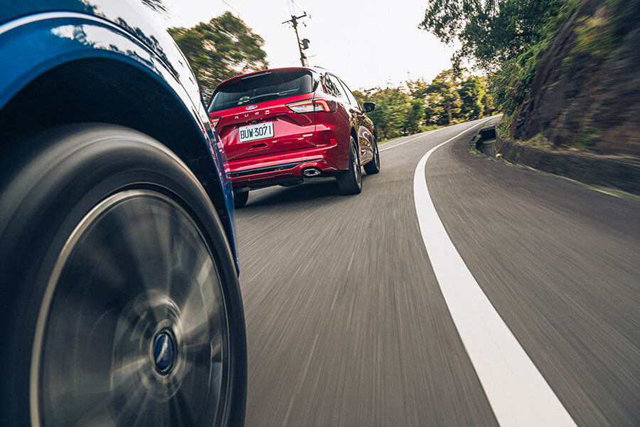 當然,兩部車的操控能力當然也不會忘記。Kuga 250 ST-Line Performance的鋁合金控制臂設計,對於減輕整體重量負載會有一定程度的幫助。例如輕量化結構有助於讓懸吊減少重量附載的晃動並增進明確感,而Kuga 250 ST-Line本身略低的車高與避震器阻尼強度也算是張弛有道,很巧妙地掌握了舒適與足夠的操駕支撐力,配上四驅系統讓四輪能夠好好地服貼於路面,帶來很好的循跡抓地力。這實在藍色小精靈身上,在全套運動下盤進駐後,確實會感受到整體下盤功力的進化,配著靈活輕巧的前軸帶動與穩定的後軸跟進表現,或許極限穩定度會稍落後於四驅兄弟,但就大家以合理的車速在山路出遊移動的需求下,我反倒覺得這樣輕快並帶有韌度的行車動態會吸引更多買家的青睞,也適合大部分移動生活的需要,更能從這樣易於上手的設定去體驗到帶有歐陸操駕本色的產品獨到魅力。