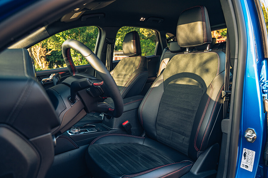 換上一襲藍色勁裝和19吋鷹爪雙色切削式鋁圈之外,EcoBoost180 ST-Line Sport還有全套的運動化座艙套件更新,讓這部車更加秀外慧中,但也多了幾分現在不少消費者喜歡的運動風格設定。當然,此番運動風格的亦是廠方以歐陸定位所擅長與自豪地設定,同時也是過去三年頗受消費大眾期盼的安排,這樣的調配,也有助於Kuga在目前的SUV市場中有更面面俱到的組合,而在整體產品豐富度與內藏價值大幅提升外,本車更進一步將價格調整至107.9萬,較原先的1.5升頂規車型還便宜三萬元,這就是我輩認為Kuga更顯戰力的重要原因吶。