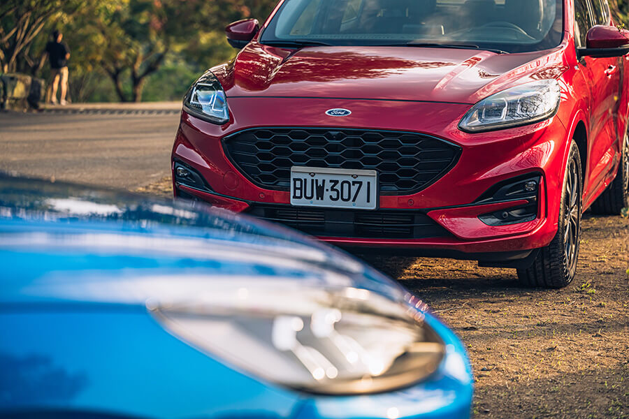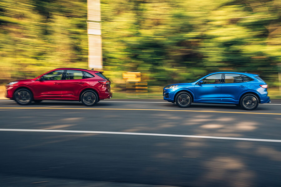 看著兩部身著ST-Line裝扮的兩位,我想大家應該都感受到這回24年式Kuga的核心訴求為何了吧?沒錯,這回新年式車系調整後,廠方正式把EcoBoost180動力加入ST-Line運動化車型陣容,同時還有隨著Focus Wagon一起推出的荒島藍新車色也是Kuga全車系的新配色,而為了與原有的EcoBoost250做出適度的差異劃分,廠方則是以ST-Line Sport一名與EcoBoost180搭配使用,EcoBoost250則更名為ST-Line Performance,也透過這項改變更強化ST-Line分支車系的完整度,與Vignale車系互相搭配下,我想對於未來是有更好的幫助的。
