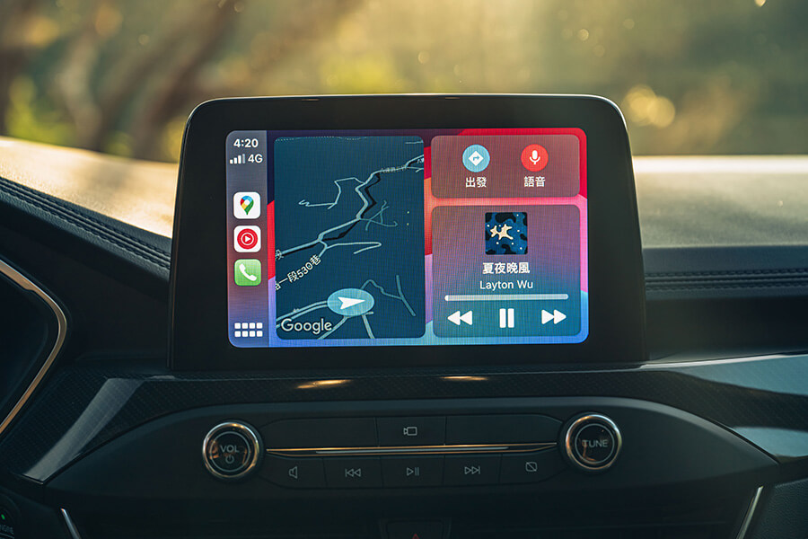 回到實用核心,Kuga 180的配備依然豐富,全數位儀表保持整個駕駛介面的科技感,當可隨著不同行車模式切換的畫面增添一些另類的娛樂氛圍;其他如無線充電,Carplay、Android auto兩大手機平台的連線能力依然是相當便利並且大幅擴增主機多用性的好幫手,8吋的SYNC 3主機本身所提供的中文導航以及其他相關的使用功能,介面安排也是一如既往的簡明易懂,很容易讓人直覺進行各種操作並建立使用習慣,而且功能表現一點也不與其他新朋友顯得下風。另外像是無線充電與雙接頭的USB規格可以讓大家有互不干擾的充電或連線機制,配上三段自動風量控制的雙區恆溫空調系統,這項設計稱得上是藍色橢圓在現世代車款的重要實用配備,同時頗得我輩心頭好,也獲得其他老戰友的參考致敬。