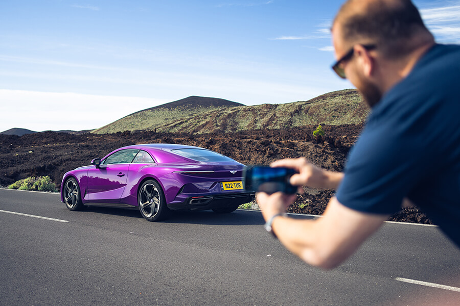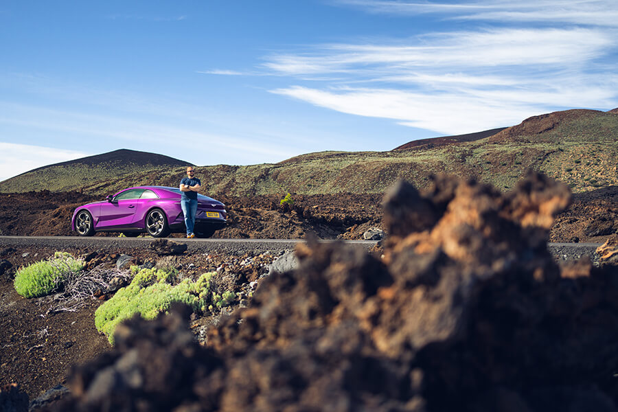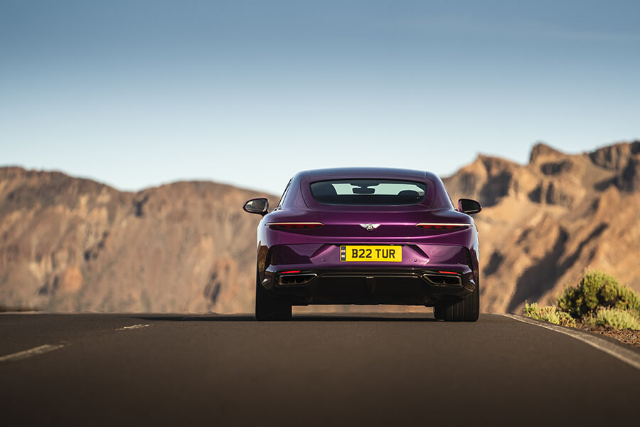 背靠著史詩般的風景,賓利本色躍現。Batur的車漆顏色突然變得深邃生動,細節浮現,輪廓鮮明。這就是未來電動賓利的形態嗎?似乎有點牽強,那長長的引擎蓋就是它內燃引擎的鐵證。將視線移離Batur的忽然優雅,周遭樹木消失了,取而代之的是無窮無盡的鬆脆火山骨,大片大片從山體上剝出來。泰德峰此刻可能還處於休眠狀態,但火山上次爆發時,遍野都是它留下的傷痕。儘管如此,它壯麗依然。早上的傾盆大雨驅散了遊客,想必他們現正在海灘上曬太陽吧。除了幾輛租來的Seat之外,這個國家公園的道路基本上是空的,而且路況很好呢。