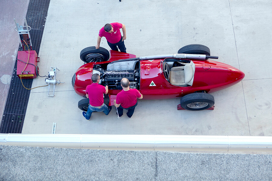 Alfetta當年很高科技,可是現在找配件真叫人欲哭無淚。它採用鋼管車架和葉片彈簧懸吊,沒有甚麼空氣動力之談,引擎設於兩個強頑硬淨的前輪之間。該死,它甚至連安全帶都沒有,那畢竟是幾十年前的事了。直至撞車事故,然後才有那麼一回事。1.5公升直八機械增壓引擎由Gioachino Colombo於1937年設計,他的傑作獲得Alfa車隊經理Enzo Ferrari賞識,後來找他負責一個計劃於1947年推出的街車項目。事實上,Colombo V12引擎到1988年仍沿用於生產。