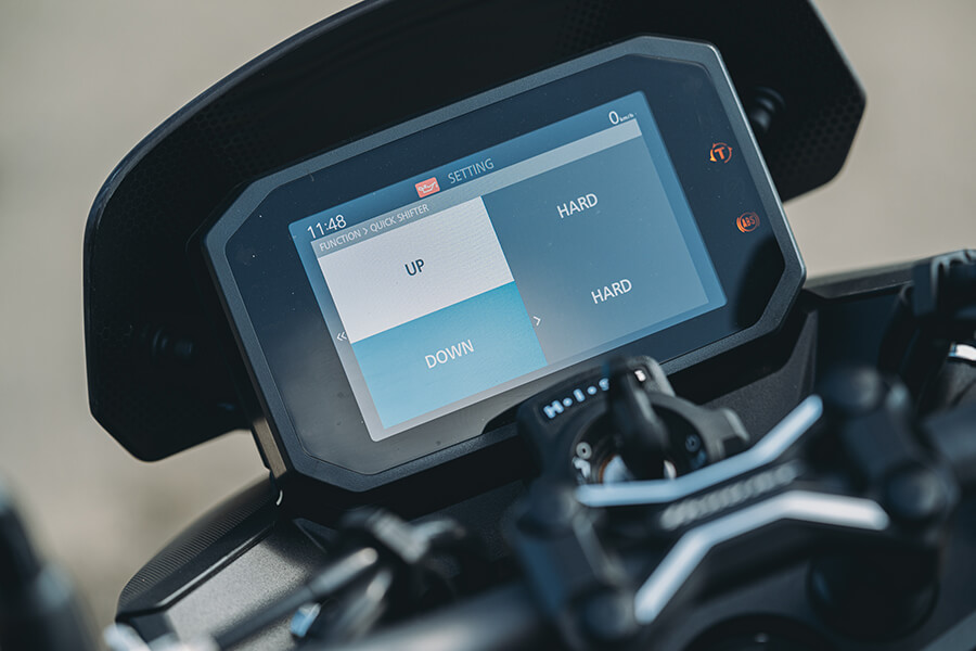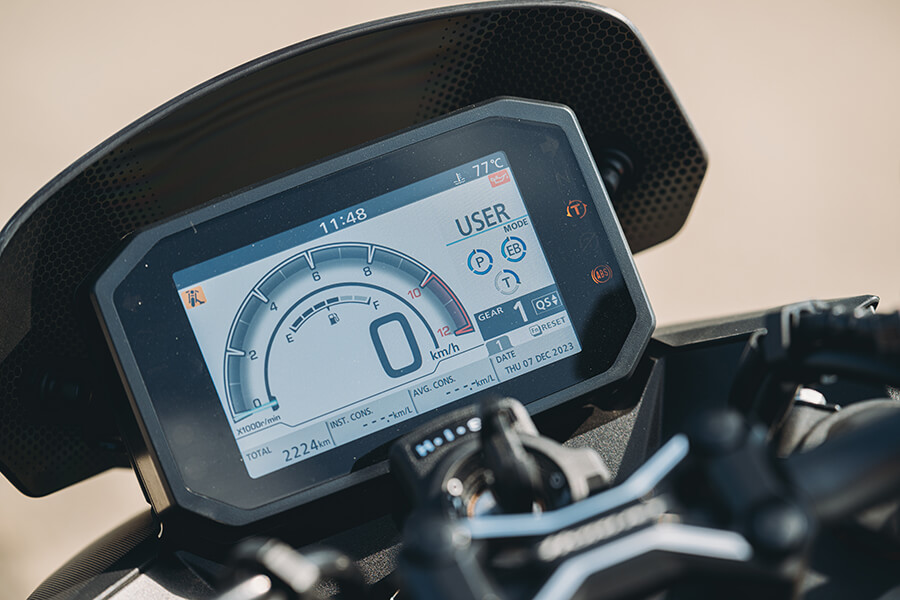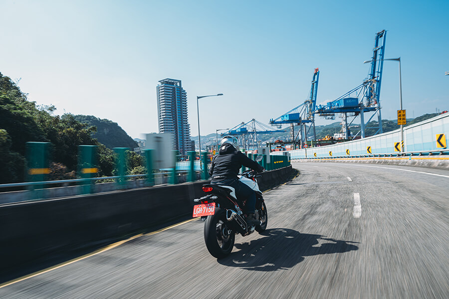 在低速的市區環境中,CB750 Hornet在低檔位的扭力反應依舊會使出開油門的動力呈現一陣陣的突波感,在Sport模式下尤為明顯。加上這顆引擎的反應似乎與過去騎乘X-ADV以及Africa Twin的經驗有些相近,因此我試著揣摩DCT變速箱的路數、在起步後隨即快速升至高檔位,這才發現善用此車豐沛扭力進行低轉速巡航有多麼滑順、動輒25km/l以上的即時油耗有多經濟實惠…甚麼?您說快睡著了是嗎?馬上退兩檔、拉高轉速準備玩樂啦…