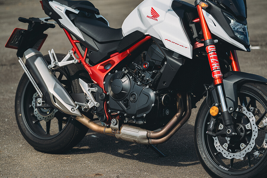 理由?君不見隔壁棚Yamaha不久前光憑YZF-R7之名,就帶給多少人們太多不切實際的期待,而CB750也好、Hornet亦如是,一邊在當年懷抱著成為"摩托車之王"的意圖、由CR750賽車蛻變而來的工藝里程碑;另一頭的Hornet更是傳承這股氣節、將跑車引擎架上街車身軀的實踐者。向此時已經將目光偷跑至規格表掃視一圈才又回來的讀者進行二度確認,是的,今天的CB750 Hornet是一部搭載水冷並列雙缸引擎的車款。