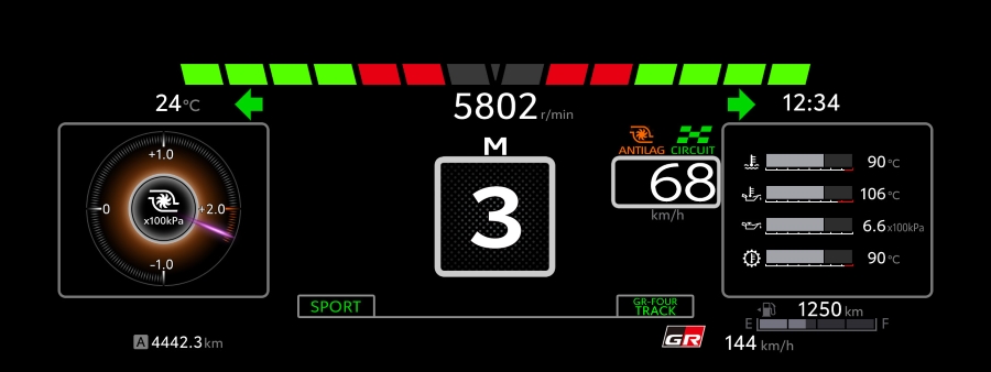 二, GR獨特的駕駛艙:以賽車手視角與需求而設計的車艙,從駕駛者的乘坐姿勢到視角,一直到控制面板和儀表資訊顯示面板,刻意向駕駛傾斜15度,甚至在此之前已經透過日本超級耐久賽和拉力賽的檢驗,讓駕駛在擷取資訊和操作方面更直覺就手,即便採用的是四點安全帶也能輕鬆操作。